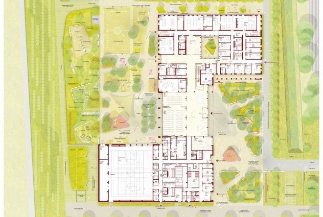 Auf dem Campus entstehen neben der vierzügigen Grundschule auch das Altländer Archiv, eine Sporthalle sowie großzügige, barrierefreie Außenbereiche mit vielfältigen Spiel-, Sport- und Lernangeboten.